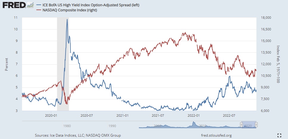 하이일드 채권 스프레드 : 하이일드 채권 수익률 에서 국채 수익률을 뺀 값으로, 이 값이 상승하면 시장이 위험하다는 신호로 볼 수 있습니다. 4% 이하로 하락해야 시장이 안정적인 것으로 판단합니다.