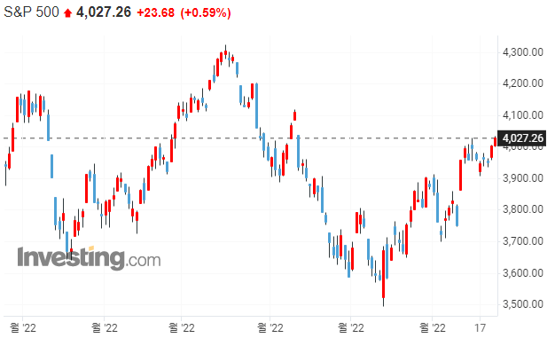 | 미국 주식 시황) S&P500 상승 추세선 하단 도달 전 저점 이탈 시도할까? _22년11월22일 (0) | 2022.11.22 |
