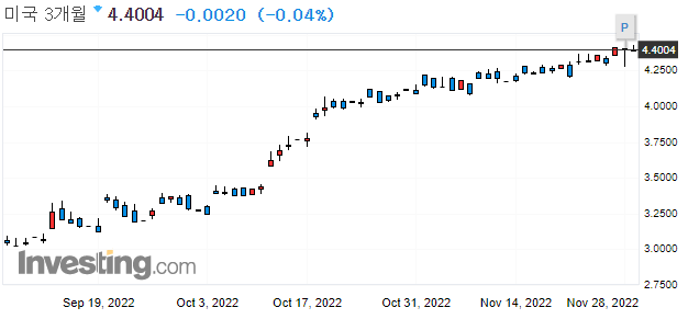 | 미국 채권 시황) 3개월물 금리 상승은 단기적 시장 위험을 의미 _22년11월26일 (0) | 2022.11.28 |