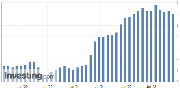 → 전년 대비 개인소비지출 물가지수(PCE) 6%(예측6%) 근원 개인소비지출 물가지수(Core PCE) 5%(예측5%)