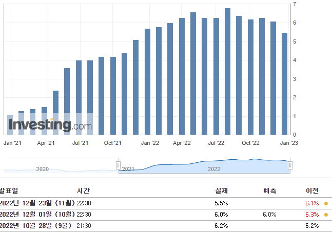 경제 지표 발표 일정) 22년 11월 미국 주요 지표 발표 일정 및 결과