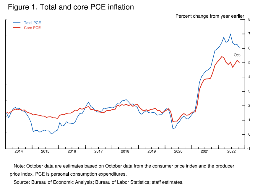 현재 10월까지의 12개월 개인 소비 지출(PCE) 인플레이션은 6.0%로 추정됩니다( 그림 1 ).