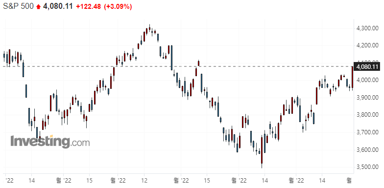 다우 +2.18% / S&P500 +3.09% / 나스닥 +4.41% / 러셀 2000 +2.45%