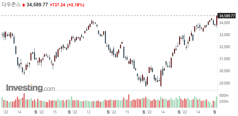 ▷미국 주요 지수 일봉 차트
