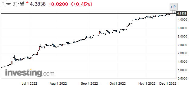 | 미국 채권 시황) 3개월물 금리 상승은 단기적 시장 위험을 의미 _22년11월26일 (0) | 2022.11.28 |