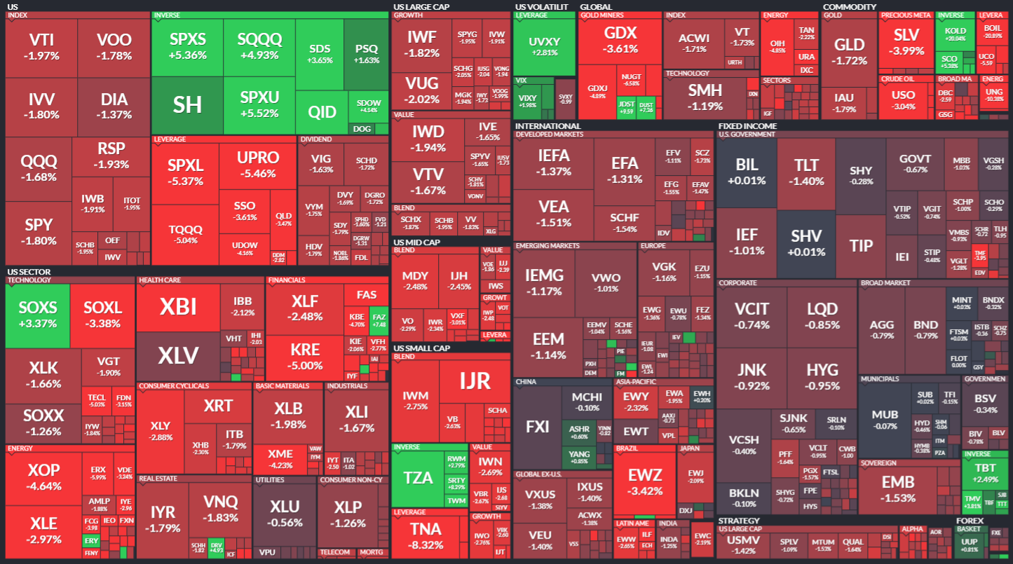 미국 ETF의 등락률을 통해서 시장의 흐름을 살펴봅니다. 특히 주가 MAP과는 다르게 채권이나 원자재, 개발도상국 지수 추종 ETF 등도 살펴볼 수 있기 때문에 좀 더 큰 시장의 흐름을 알 수 있습니다.