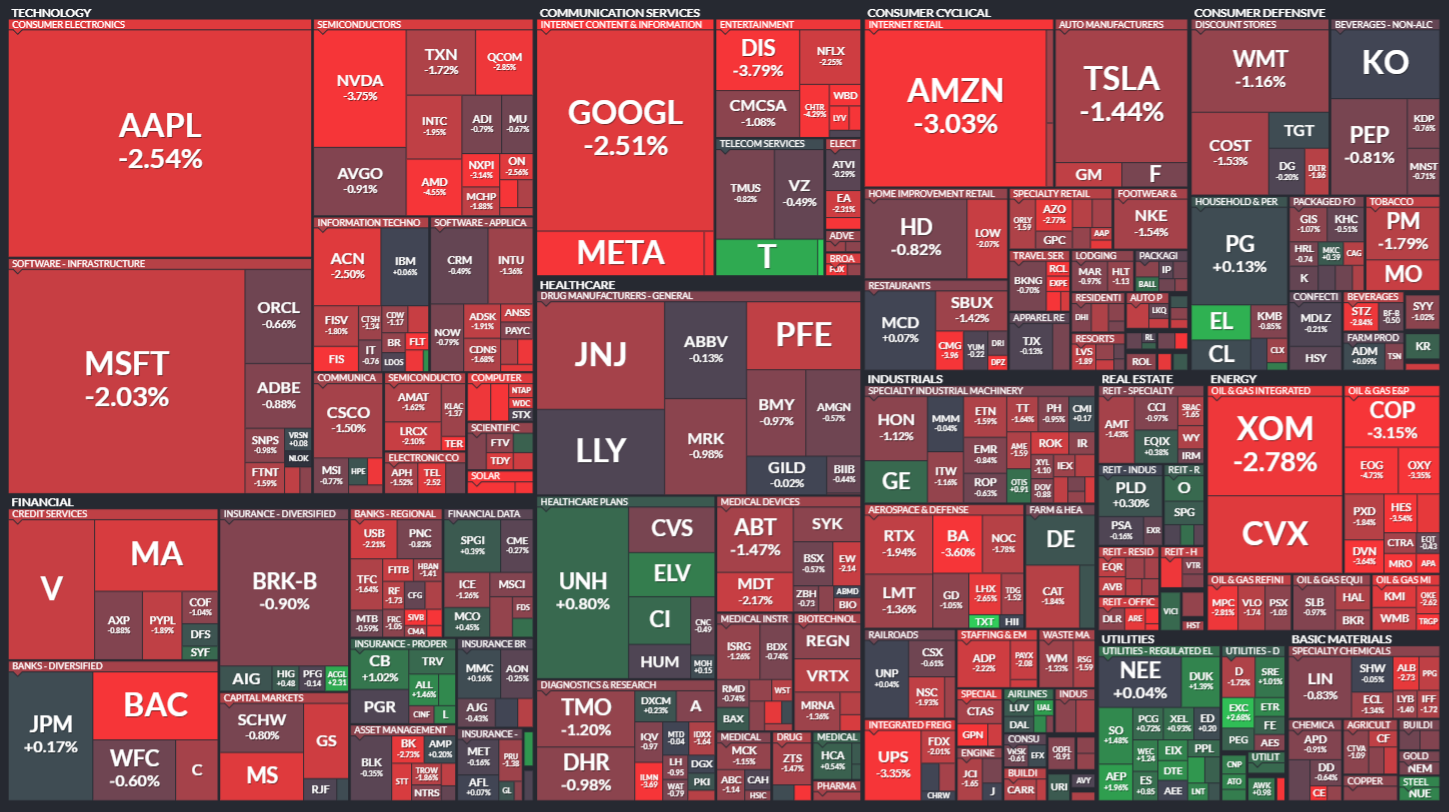 미국 S&P500에 속한 기업들의 주가 등락을 살펴봅니다. 같은 섹터 내에서도 개별 기업 이슈로 인해 주가가 서로 다르게 움직이는 것을 볼 수 있습니다. 특히 섹터 내 대장주, 주도주의 움직임을 통해 해당 섹터의 성장성을 가늠해보기 좋습니다.