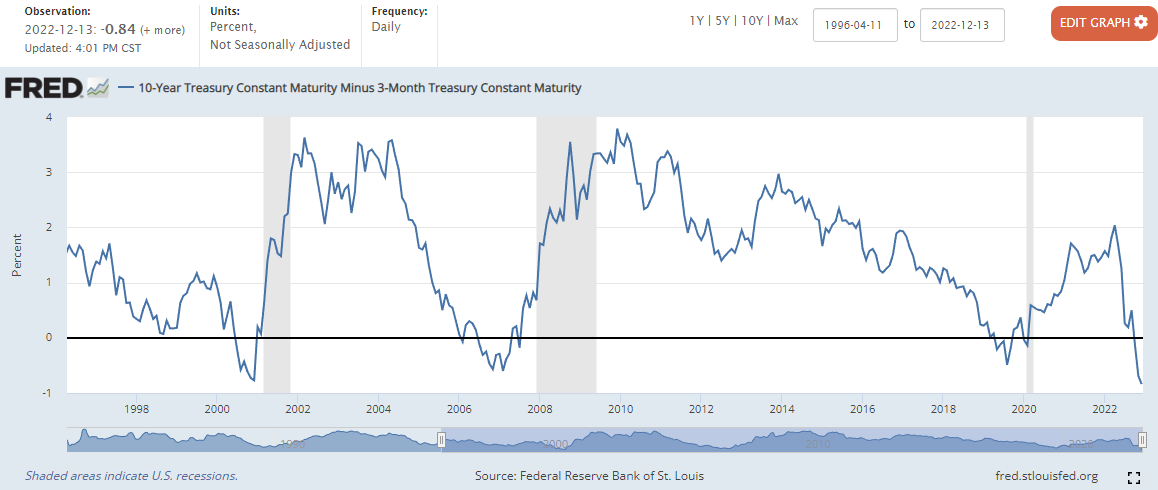 22년 4월 1일 미국 장단기 금리차 역전 항상 미국 10년 물 국채 수익률과 2년 물 국채 수익률의 차이가 마이너스에 도달하면, 1~3년 이내에 경기침체가 일어났었습니다. (위 그래프는 10년 물과 2년