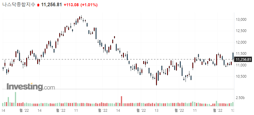 미국 주식 시장은 한국 시간으로 12월 13일 10시 30분에 발표되는 미국 소비자물가 지수가 예측치를 하회할 것을 기대하면서 주가가 상승했습니다.