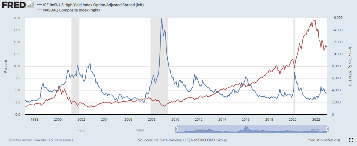 하이일드 채권 스프레드 : 하이일드 채권 수익률 에서 국채 수익률을 뺀 값으로, 이 값이 상승하면 시장이 위험하다는 신호로 볼 수 있습니다. 4% 이하로 하락해야 시장이 안정적인 것으로 판단합니다.