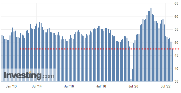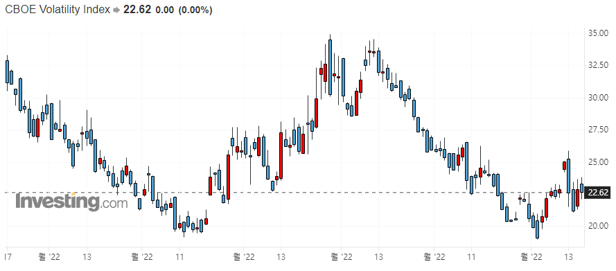 미국의 제조업 PMI는 46.2(예상 47.7), 서비스업 PMI 44.4(예상 46.8)로 모두 예상치를 하회하는 모습을 보여주었습니다. PMI가 50이하인 경우 경기가 수축 국면임을 의미하는데요. 이러한 안 좋은 지수의 발표는 미국 주식 시장에 경기 침체에 대한 공포를 심어주고 있는 것 같습니다.