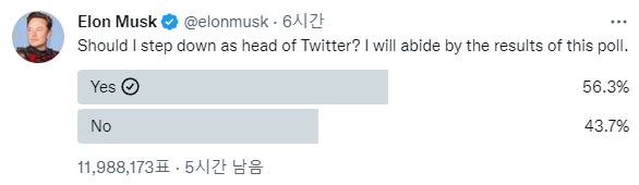 → 12월 19일) 일론 머스크, 트위터 CEO자리에서 내려올까?