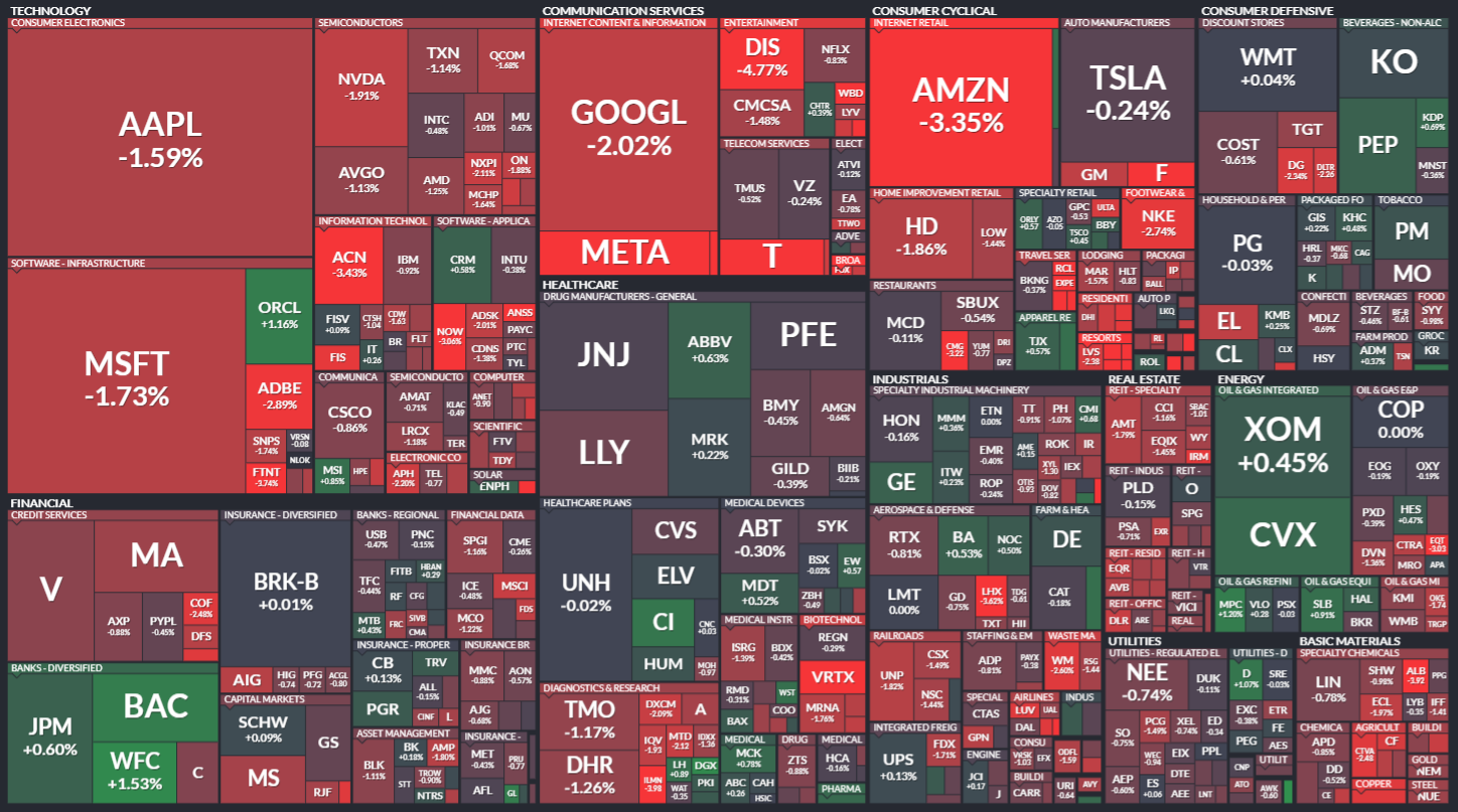 미국 S&P500에 속한 기업들의 주가 등락을 살펴봅니다. 같은 섹터 내에서도 개별 기업 이슈로 인해 주가가 서로 다르게 움직이는 것을 볼 수 있습니다. 특히 섹터 내 대장주, 주도주의 움직임을 통해 해당 섹터의 성장성을 가늠해보기 좋습니다.