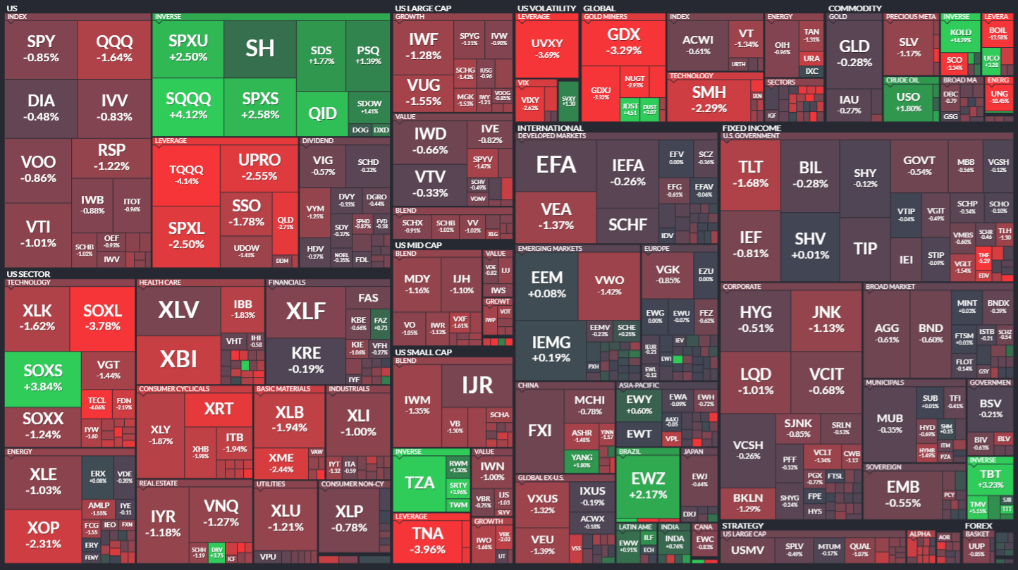미국 ETF의 등락률을 통해서 시장의 흐름을 살펴봅니다. 특히 주가 MAP과는 다르게 채권이나 원자재, 개발도상국 지수 추종 ETF 등도 살펴볼 수 있기 때문에 좀 더 큰 시장의 흐름을 알 수 있습니다.