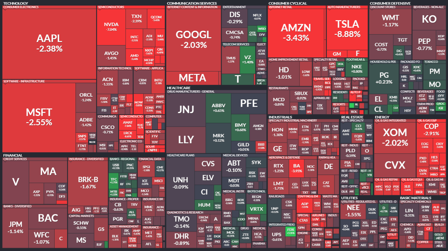 미국 S&P500에 속한 기업들의 주가 등락을 살펴봅니다. 같은 섹터 내에서도 개별 기업 이슈로 인해 주가가 서로 다르게 움직이는 것을 볼 수 있습니다. 특히 섹터 내 대장주, 주도주의 움직임을 통해 해당 섹터의 성장성을 가늠해보기 좋습니다.