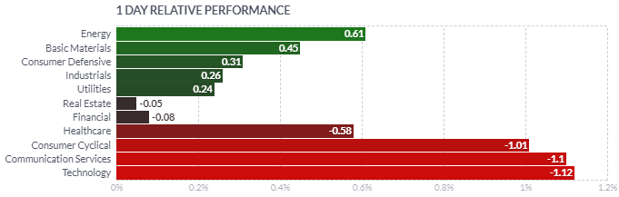 유가 선물 가격이 상승이 에너지 섹터 전반에 긍정적인 영향을 미치고 있는 것으로 보입니다. 엑슨모빌(XOM) +2.64%, 쉐브론(CVX) +3.09%, 옥시덴탈 (OXY) +3.48% 상승하였습니다.