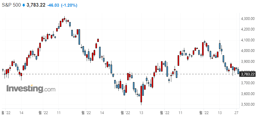 이러한 인플레이션 장기화에 대한 우려로 인해 미국에 50bp 기준 금리 인상 확률이 점차 높아지고 있으며, 이는 주식 시장에 대한 투자 매력을 낮추는 요인으로 작용하므로, 주식 시장에도 악재일 수 밖에 없습니다.