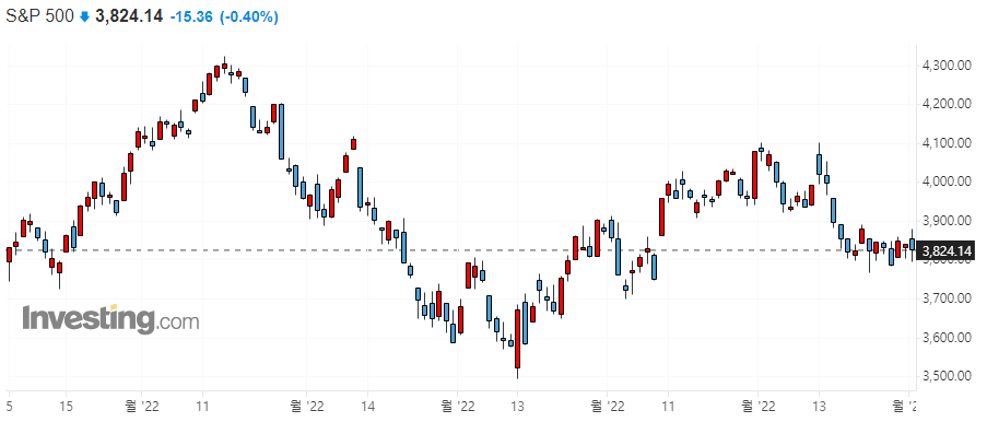 다우 -0.03% / S&P500 -0.40% / 나스닥 -0.76% / 러셀 2000 -0.59%