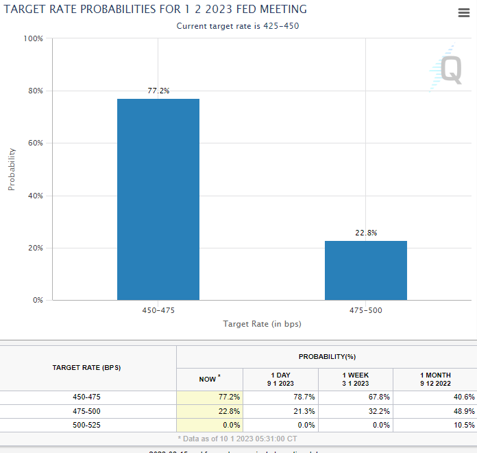 트윗 내용을 간략히 정리하면, 미국 채권 시장은 Fed가 기준 금리를 5% 이상으로 올리지 못할 것이라고 자신하고 있습니다.