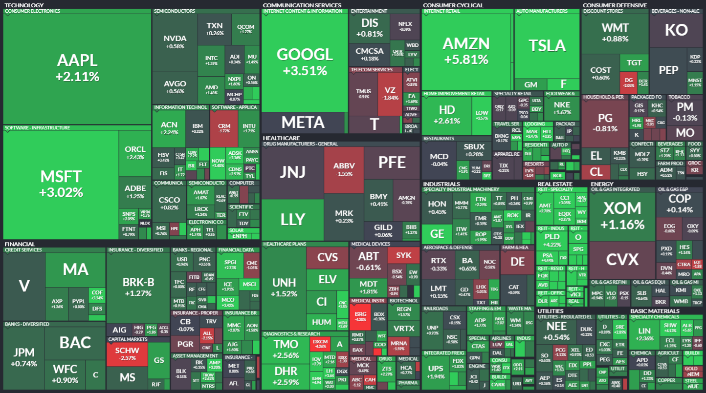 미국 S&P500에 속한 기업들의 주가 등락을 살펴봅니다. 같은 섹터 내에서도 개별 기업 이슈로 인해 주가가 서로 다르게 움직이는 것을 볼 수 있습니다. 특히 섹터 내 대장주, 주도주의 움직임을 통해 해당 섹터의 성장성을 가늠해보기 좋습니다.