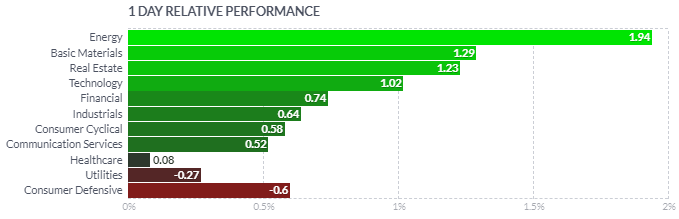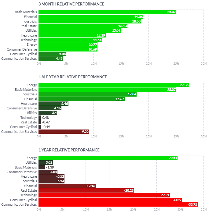 1일/한 달/3달/반년 섹터별 등락률을 통해서, 시장 상황을 가늠해볼 수 있습니다.