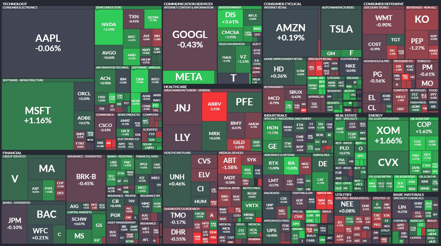 미국 S&P500에 속한 기업들의 주가 등락을 살펴봅니다. 같은 섹터 내에서도 개별 기업 이슈로 인해 주가가 서로 다르게 움직이는 것을 볼 수 있습니다. 특히 섹터 내 대장주, 주도주의 움직임을 통해 해당 섹터의 성장성을 가늠해보기 좋습니다.