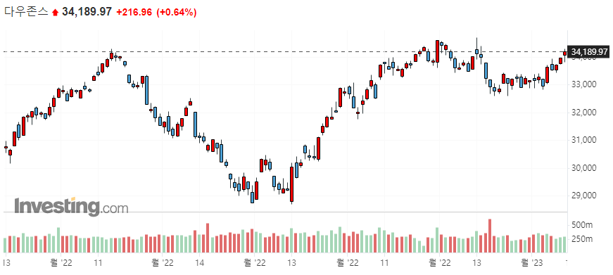 ▷미국 주요 지수 일봉 차트