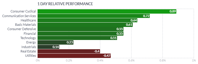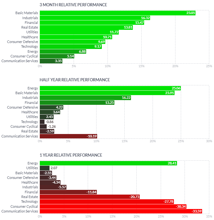 1일/한 달/3달/반년 섹터별 등락률을 통해서, 시장 상황을 가늠해볼 수 있습니다.