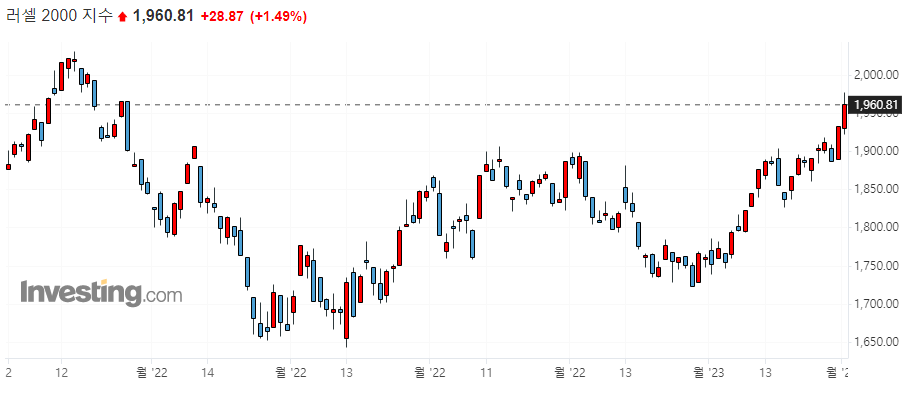 다우 +0.02% / S&P500 +1.05% / 나스닥 +2.00% / 러셀 2000 +1.49%