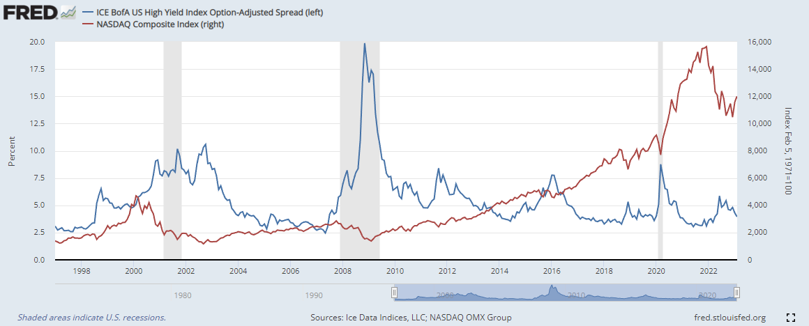 하이일드 채권 스프레드 : 하이일드 채권 수익률 에서 국채 수익률을 뺀 값으로, 이 값이 상승하면 시장이 위험하다는 신호로 볼 수 있습니다. 4% 이하로 하락해야 시장이 안정적인 것으로 판단합니다.