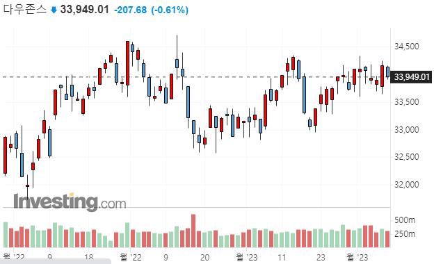 개인적으로는 미국의 최종 기준금리 인상이 주식시장을 하락시켰다기보다는 ChatGPT로 인한 단기 버블이 껄질 조짐이 보이고있으며, 최근 너무 과열된 상황에서 조정이 필요했다고 보고있습니다. 특히 VIX가 추가 하락하지 않고 바닥을 다지는 모습(많은 투자자들이 옵션 헷지를 거는 중)에서 향후 주가 하락이 확률이 높다는 것을 예상해볼 수 있겠습니다.