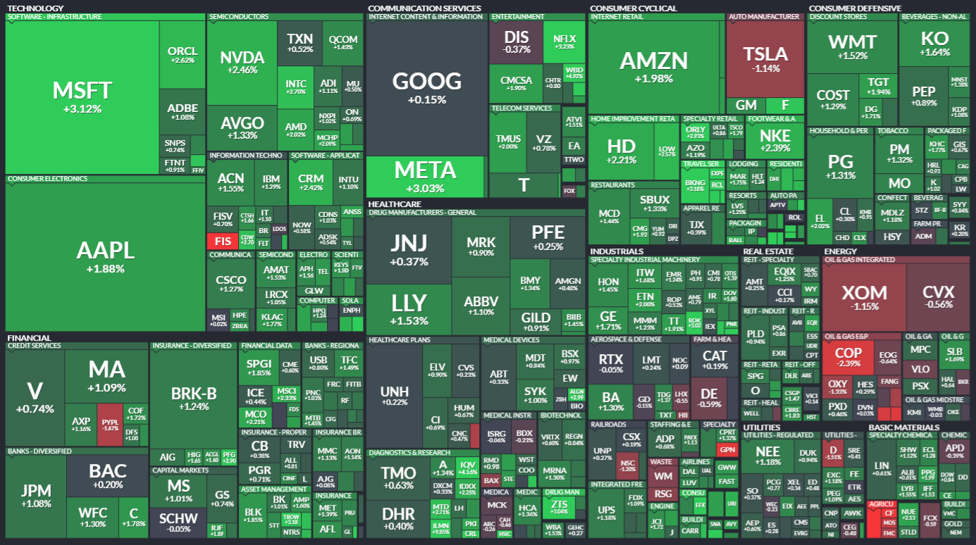 미국 S&P500에 속한 기업들의 주가 등락을 살펴봅니다. 같은 섹터 내에서도 개별 기업 이슈로 인해 주가가 서로 다르게 움직이는 것을 볼 수 있습니다. 특히 섹터 내 대장주, 주도주의 움직임을 통해 해당 섹터의 성장성을 가늠해 보기 좋습니다.