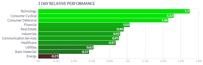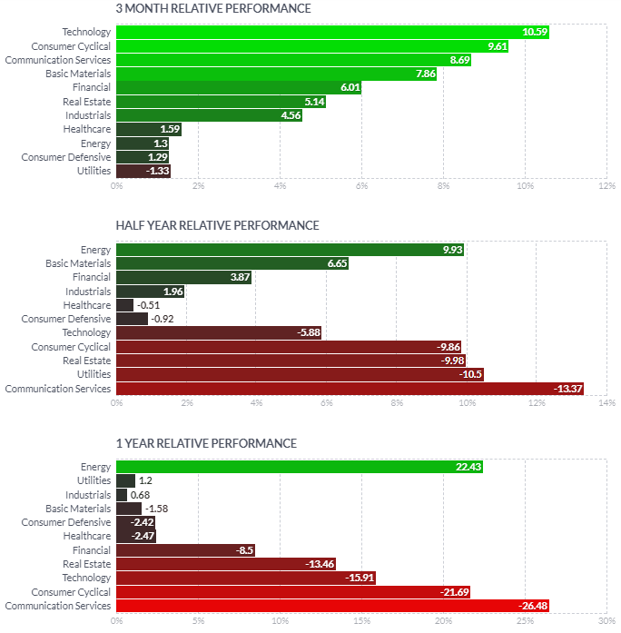 1일/한 달/3달/반년 섹터별 등락률을 통해서, 시장 상황을 가늠해볼 수 있습니다.
