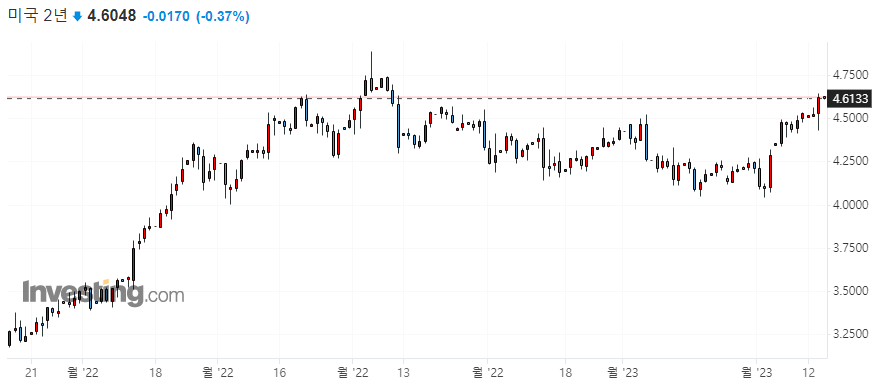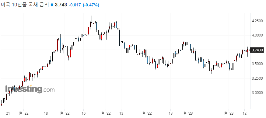 10년물 국채 수익률 3.7530 / 2년물 국채 수익률 4.6218 / 3개월물 국채 수익률 4.8128