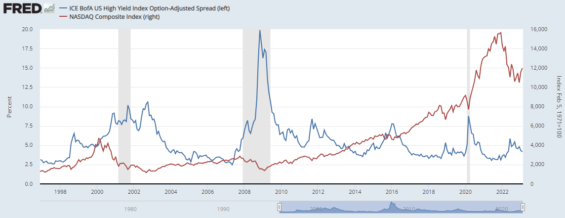 하이일드 채권 스프레드 : 하이일드 채권 수익률 에서 국채 수익률을 뺀 값으로, 이 값이 상승하면 시장이 위험하다는 신호로 볼 수 있습니다. 4% 이하로 하락해야 시장이 안정적인 것으로 판단합니다.