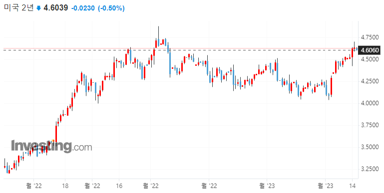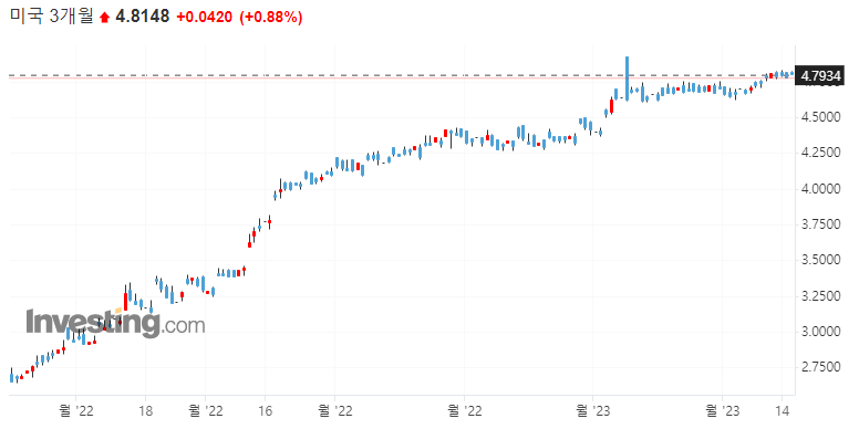 10년물 국채 수익률 3.7530 / 2년물 국채 수익률 4.6218 / 3개월물 국채 수익률 4.8128