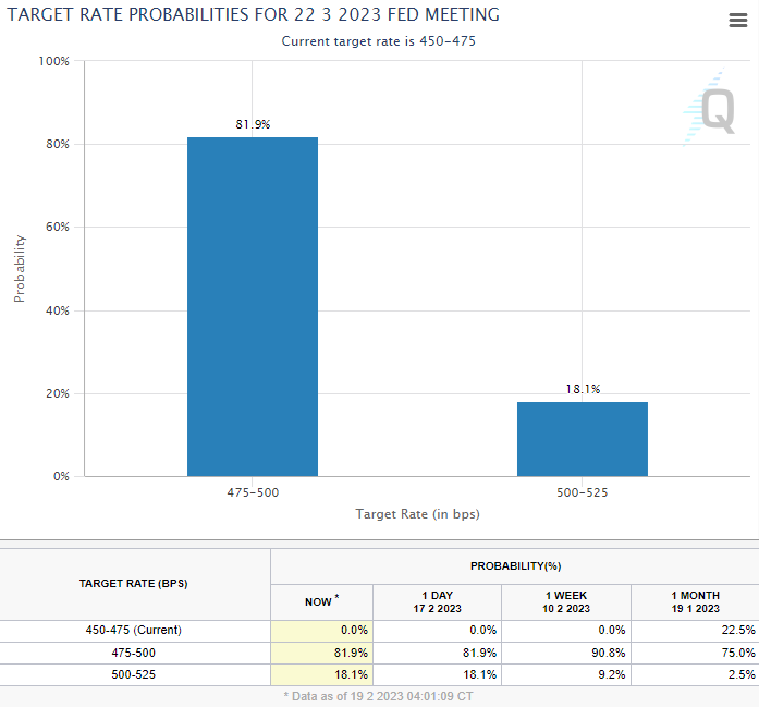 → 2월 16일) 3월 50bp 기준 금리 인상 가능성
