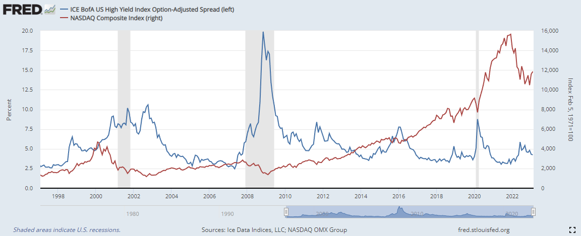 하이일드 채권 스프레드 : 하이일드 채권 수익률 에서 국채 수익률을 뺀 값으로, 이 값이 상승하면 시장이 위험하다는 신호로 볼 수 있습니다. 4% 이하로 하락해야 시장이 안정적인 것으로 판단합니다.