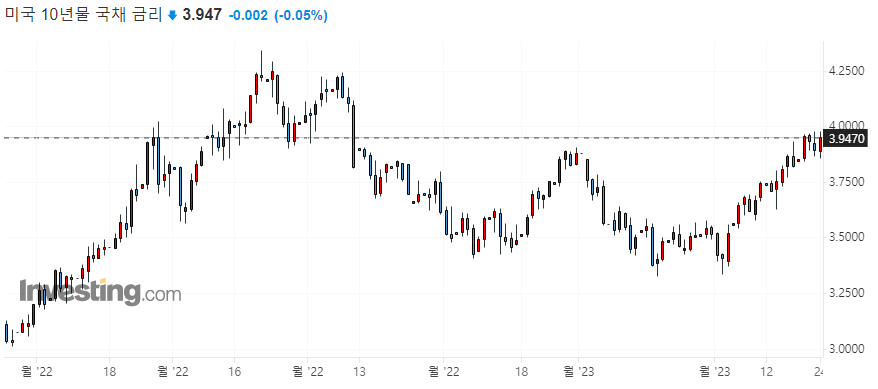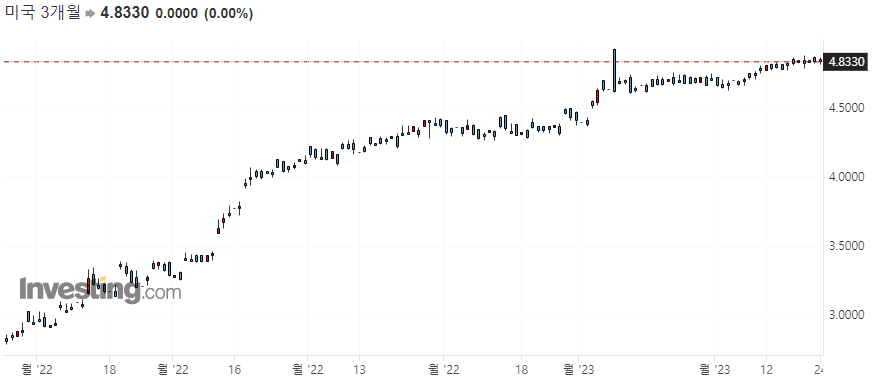 10년물 국채 수익률 3.890 / 2년물 국채 수익률 4.7036 / 3개월물 국채 수익률 4.8320
