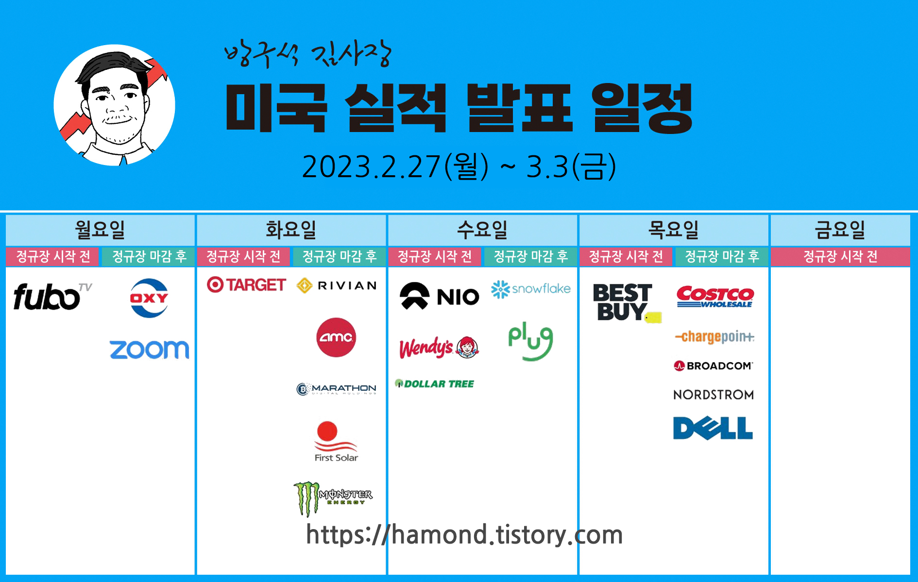 | 실적 발표 일정) 미국 주식 4분기 어닝 일정 및 결과(23년 2월 20일~2월24일) (1) | 2023.02.20 |