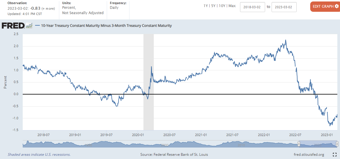 → 3월 1일) 10년물과 3개월물 장단기 금리차 완화 시작!