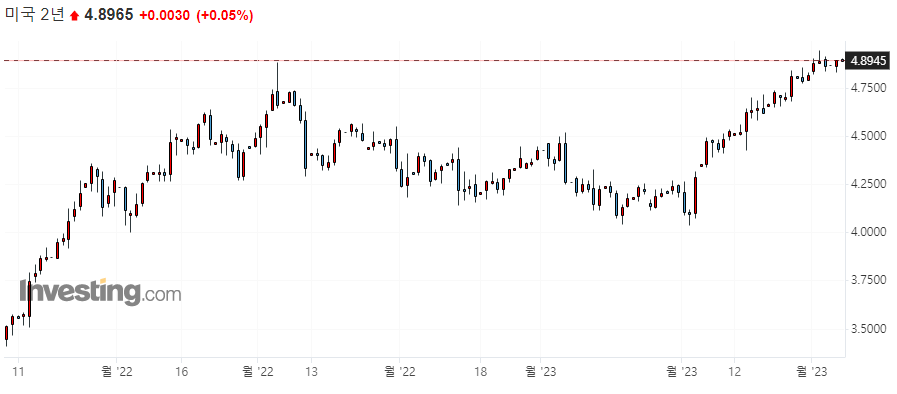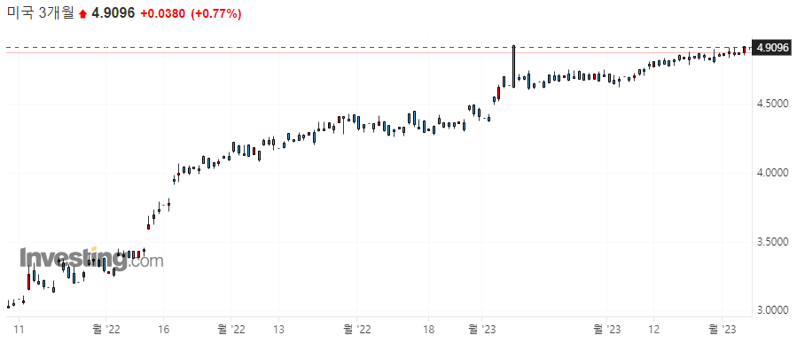 10년물 국채 수익률 3.9670 / 2년물 국채 수익률 4.8945 / 3개월물 국채 수익률 4.9174