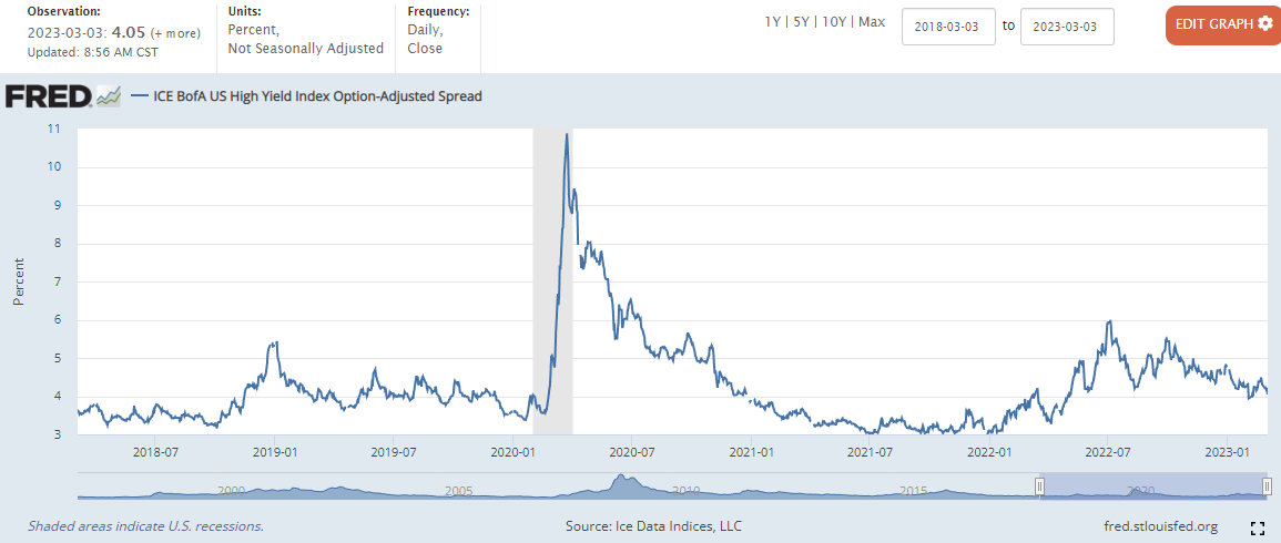 미국 채권 시황) 하이일드 스프레드 급등 조짐? 위험에 대비하자 _23년2월28일