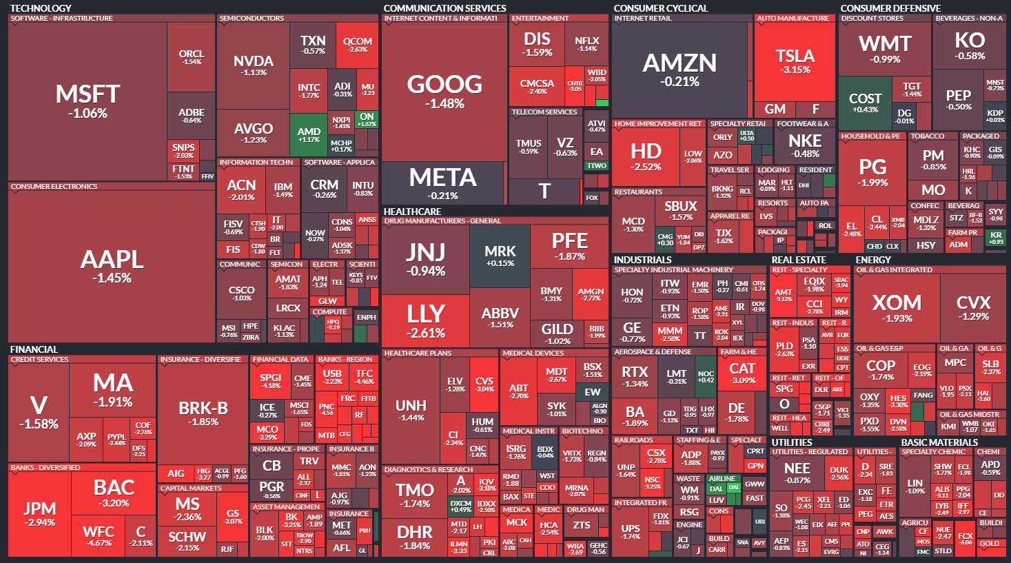 미국 S&P500에 속한 기업들의 주가 등락을 살펴봅니다. 같은 섹터 내에서도 개별 기업 이슈로 인해 주가가 서로 다르게 움직이는 것을 볼 수 있습니다. 특히 섹터 내 대장주, 주도주의 움직임을 통해 해당 섹터의 성장성을 가늠해 보기 좋습니다.