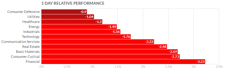 그래서 이를 반영하듯 미국의 은행주 섹터가 크게 하락한 것 뿐만 아니라, 러셀2000 지수(중소형주)또한 함께 크게 하락한 것 입니다.