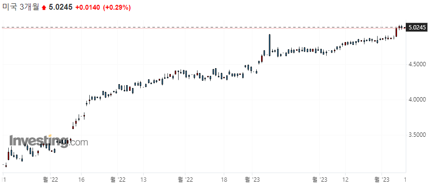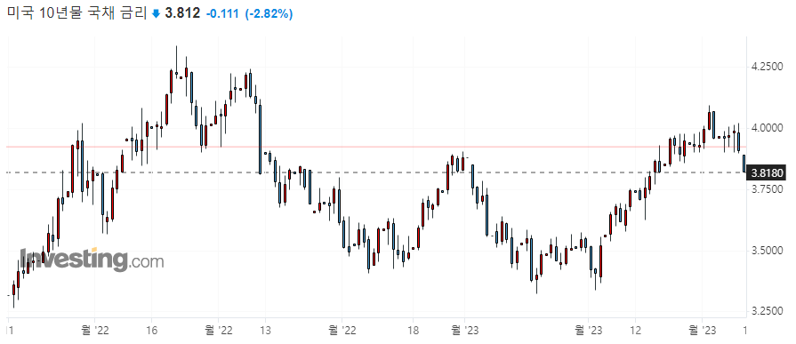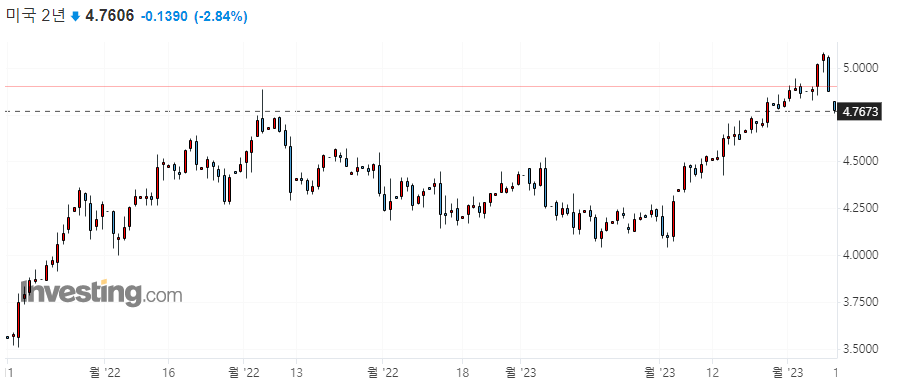 10년물 국채 수익률 3.8180 / 2년물 국채 수익률 4.7606 / 3개월물 국채 수익률 5.0245