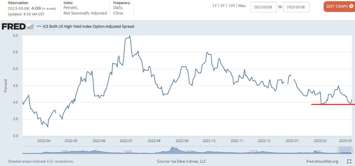 미국 채권 시황) 하이일드 스프레드 급등 조짐? 위험에 대비하자 _23년2월28일