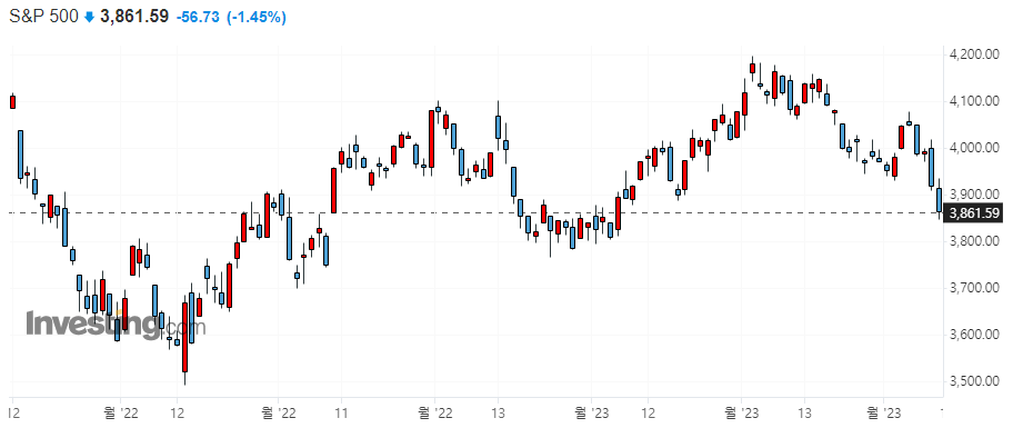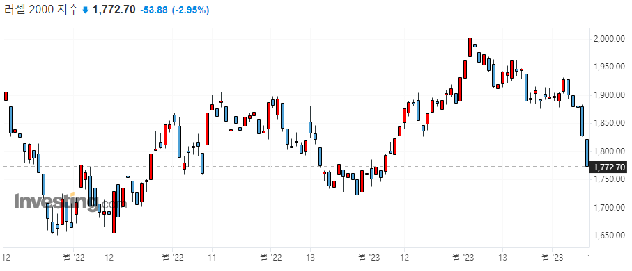 다우 -1.07% / S&P500 -1.45% / 나스닥 -1.76% / 러셀 2000 -2.95%