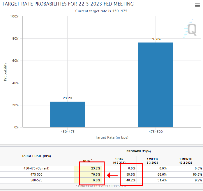 → 3월 11일) 하루만에 금리차 완화 50bp 인상 예상 확률 사라졌다.