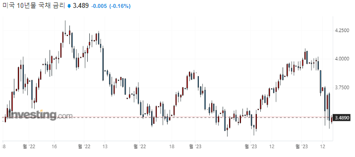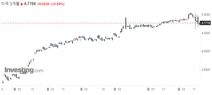 10년물 국채 수익률 3.489 / 2년물 국채 수익률 3.9591 / 3개월물 국채 수익률 4.7784